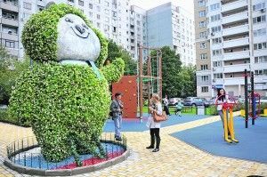 Более половины голосов было отдано за Двор олимпийцев — самый, пожалуй, интересный объект. Центром двора является топиарная фигура олимпийского мишки, который встречает посетителей, а за его спиной стоит электронное табло, где идет отсчет времени до начала Сочинских Олимпийских игр. Здесь огорожена площадка для занятий баскетболом, волейболом, футболом, установлены спортивные тренажеры, на которых занимаются и школьники, и взрослые. Но особой популярностью пользуется комплекс со скалодромом, канатами, веревочными лестницами, шведской стенкой.