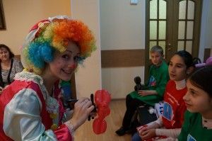 Добровольцы движения «Лидер» пришли к ребятам не с пустыми руками, они организовали для ребят мастер-класс по твистингу — конструирование из продолговатых шариков различных фигур. Лидеры привели с собой веселого клоуна Фунтика, который лучше всех на свете умеет делать из шариков различных животных. Фунтик в зажигательной и жизнерадостной манере, присущей всем клоунам, научил ребят,как сделать из шарика собачку. Дети были в восторге, лидеры всячески поддерживали ребят и если кто-то не справлялся, помогали. Не забыли гости и про подарки, каждый ребенок получил из рук добровольца движения «Лидер» футболку и шарф с символикой Городского центра «Дети улиц».