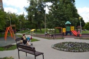 Это отличное место для прогулок с детьми. Для малышей обустроили современные, красочные игровые зоны. Есть горки, качели, песочница.