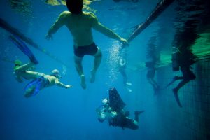 Размер самой чаши бассейна 50 на 25 метров, а глубина начинается от двух метров.