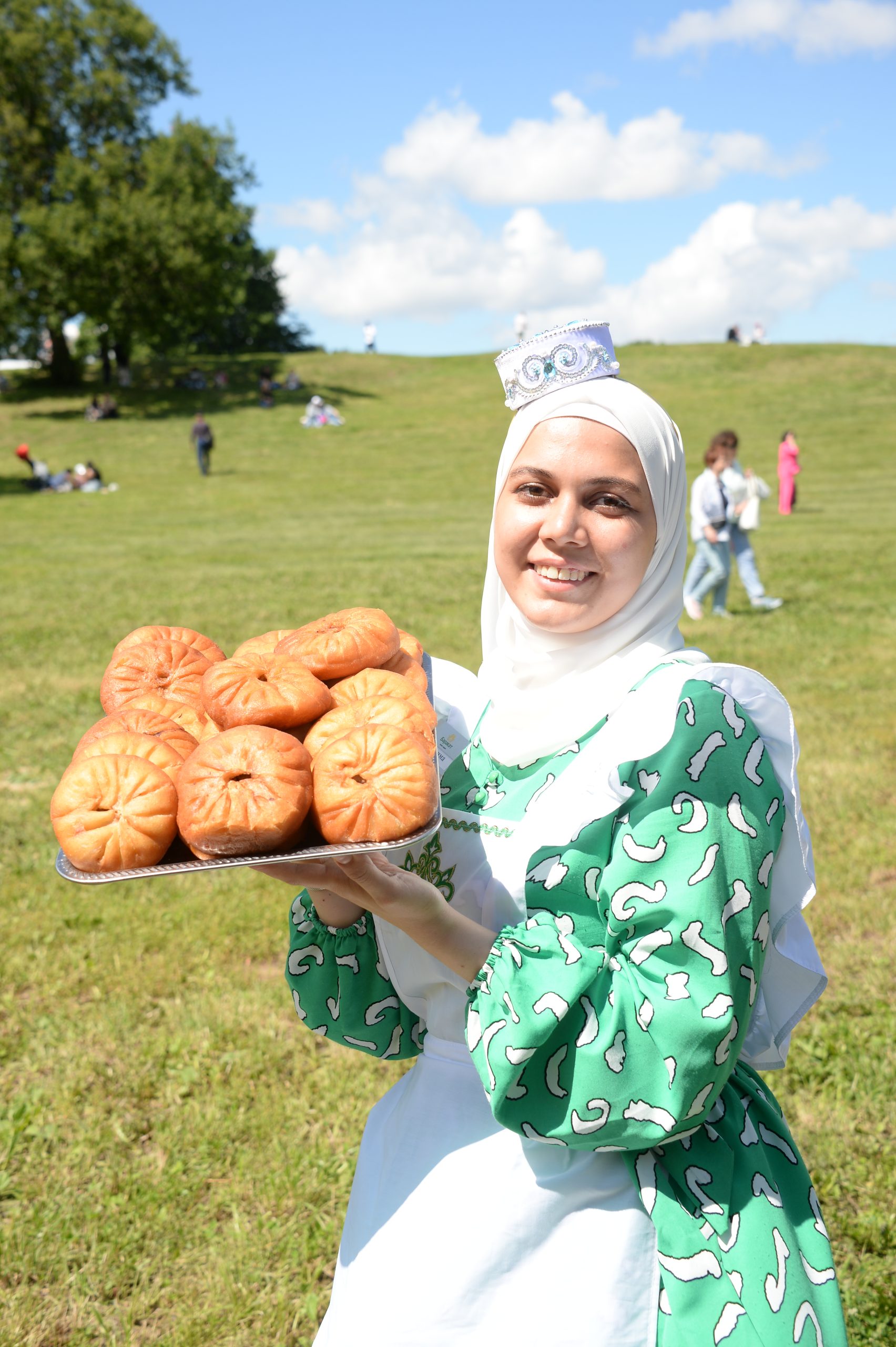 — Вся выпечка у нас традиционная. Есть и знаменитые треугольные эчпочмаки, и любимые многими пирожки с мясом — перемячи. Они готовятся в масле с добавлением лука. Выходит очень сочно, — делится продавщица яств Халима Халикова.