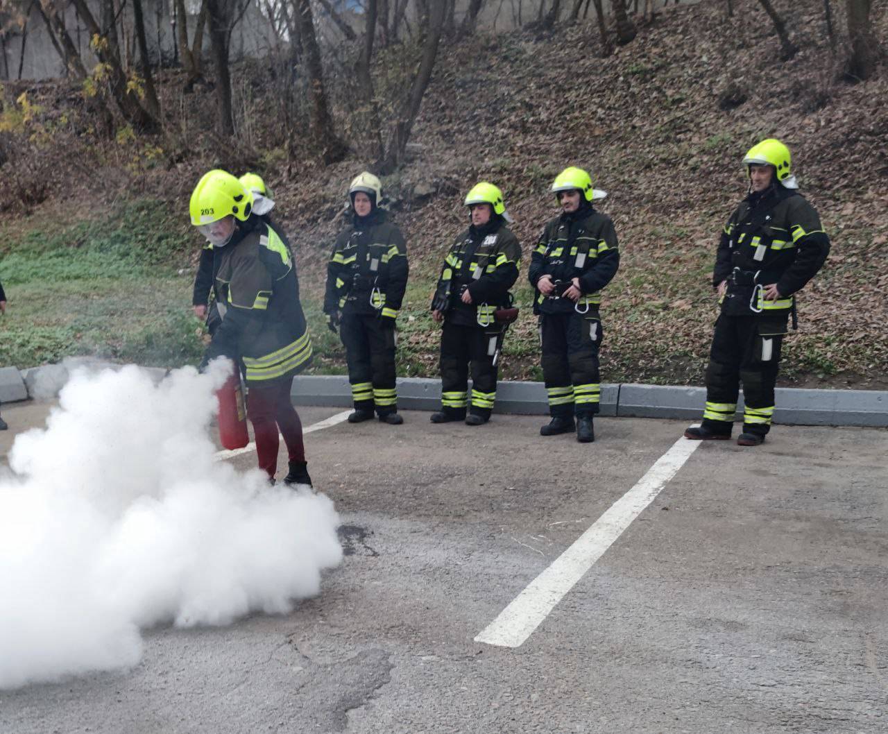 На мероприятии заместитель начальника ПСО №203 Олег Тетерюков рассказал о правилах пользования огнетушителем, подкрепив теоретические знания практикой.